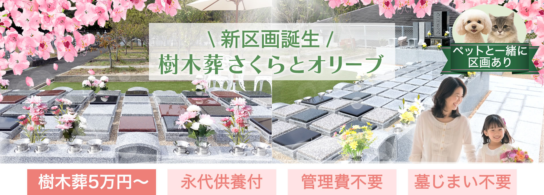 新区画の「樹木葬さくらとオリーブ」は、すべてのお墓に永代供養の仕組みを導入し、将来の墓じまいも一切不要です。